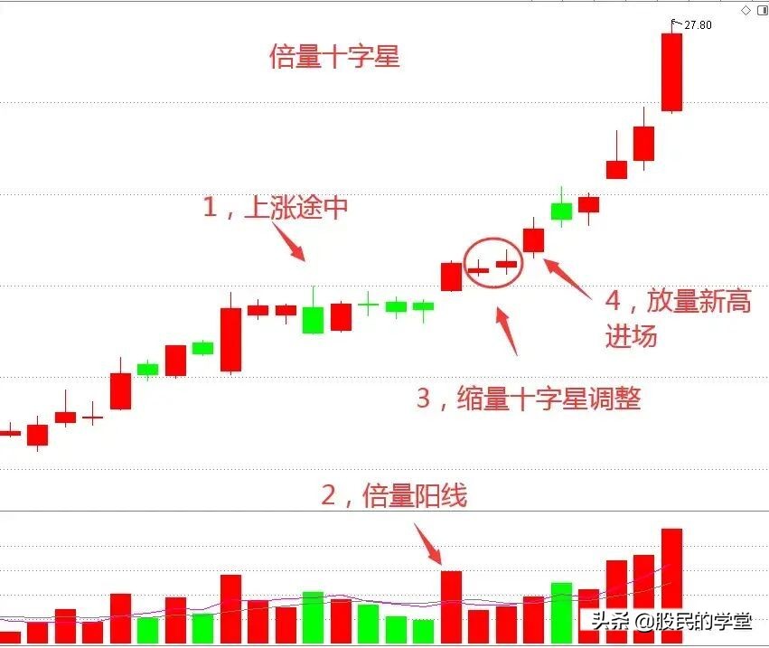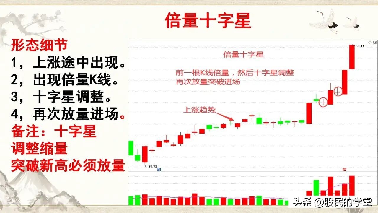 5.明白以上三点后,再去研究“倍量十字星”形态,我相信你会有不一样的收获。