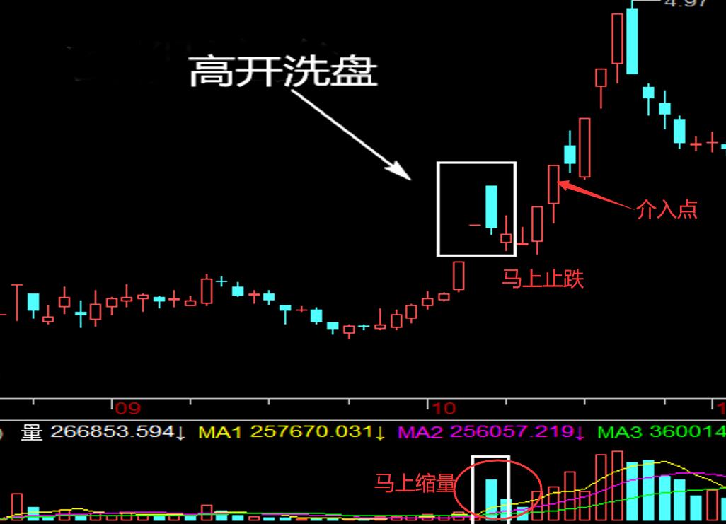 抄底技巧:底部蚂蚁上树、高开阴线洗盘战法!