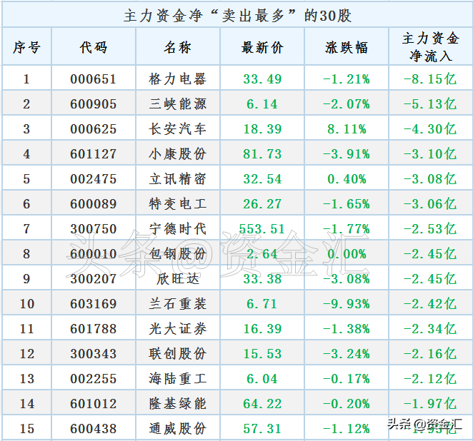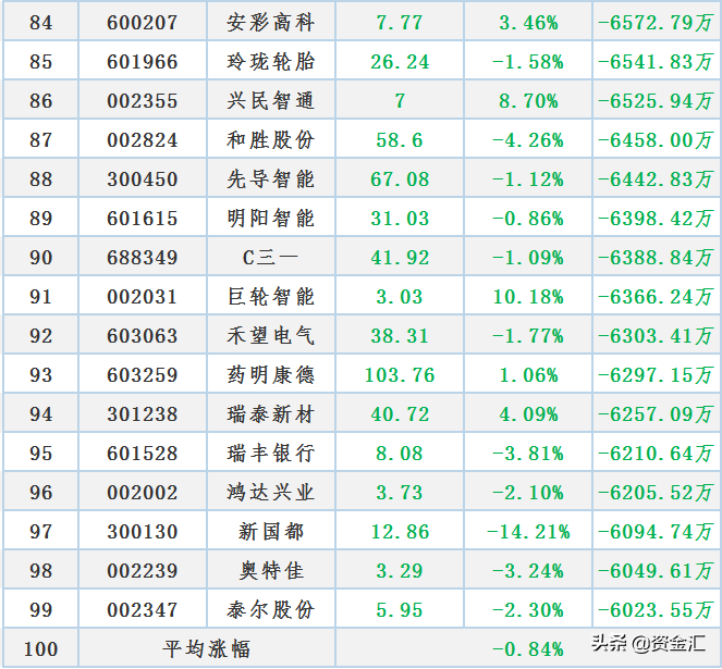 冲高回落,不做“接盘侠”,今日主力资金“大幅卖出”100股,名单来了