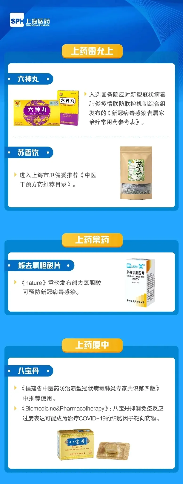上海医药不仅和康希诺合资生产吸入式新冠疫苗,参股的成都威斯克生物研发的针对奥密克戎变异株的重组蛋白新冠疫苗也获批紧急使用。多家子公司生产的熊去氧胆酸片和布洛芬等产品也成为近期热点。子公司生产的六神丸,安宫牛黄丸,通宣理肺颗粒,桑菊感冒片,感冒退热颗粒,银翘解毒颗粒,小柴胡颗粒,防风通圣丸,小儿止咳糖浆,生脉饮,参脉注射液,藿香正气水等多个中成药还纳入新冠病毒诊疗方案中。上海医药拥有多个中医药老字号品牌和珍贵配方产品,拥有从源头种植、饮片炮制、中成药制造、中医门诊部到医院终端销售的全产业链业务布局,旗下拥有7家中药企业、9个中药核心品牌、3个中药国家保密配方和860种中药产品批文,14个重点中药产品规模过亿。雷允上、胡庆余堂、青春宝、信谊,国风,苍松,龙虎,神象,鼎炉、八宝丹、麝香保心丸、六神丸等诸多知名品牌和产品都在上海医药旗下。与此同时,上海医药还有不少天然具备大健康属性的潜力产品,包括能够有效调理肠道菌群的益生菌系列,试水美肤领域的藏红花系列等,都已打磨出优质产品系列。