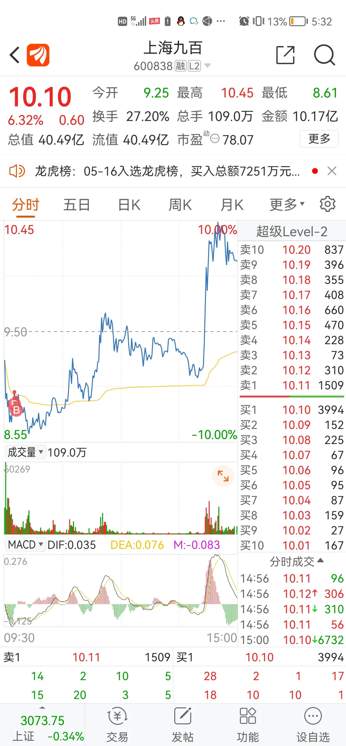 3.3、上海九百:早盘撤出安徽建工和宏润建设,重仓买入低位惯性下跌的商业百货板块,与徐家汇一起进入周末复盘的上海复工逻辑中,二选一买入上海九百,收一个小地天板。