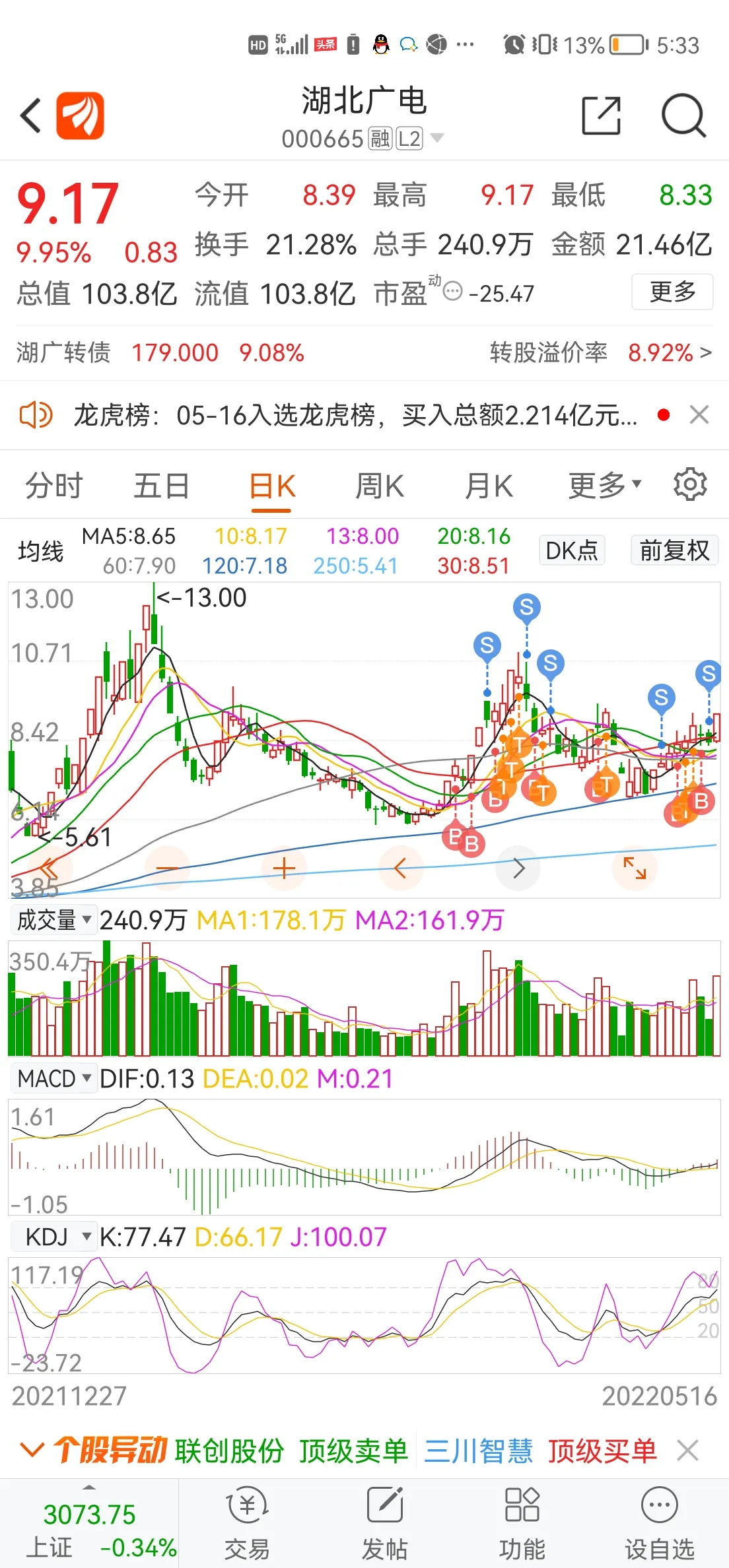 2.明日策略:回踩五天线加仓,上攻持有,中线目标11元。