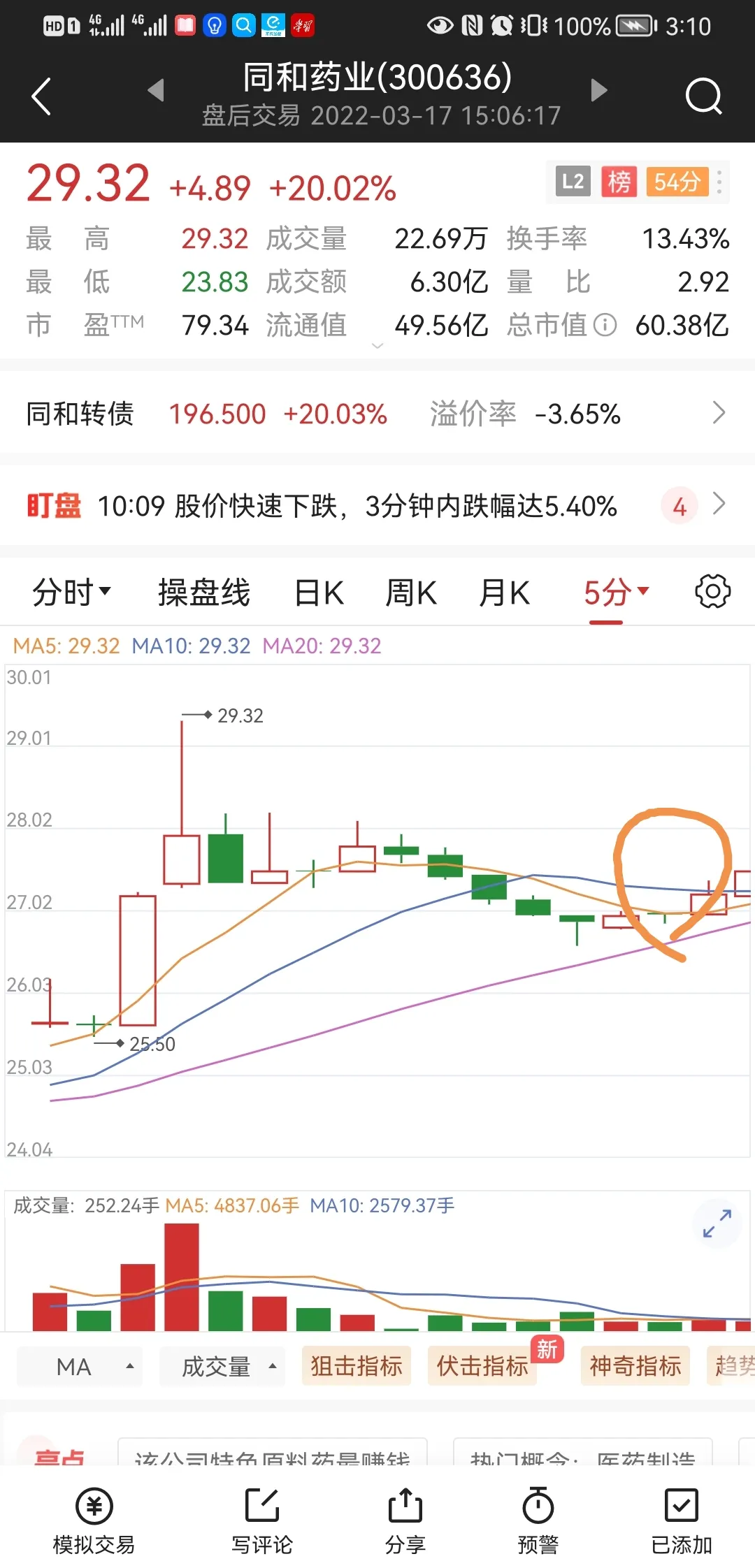 9.下午风云变幻,新冠药物概念股纷纷回落,以岭药业从基本涨停缓缓下滑,兰卫医学脉冲10个点开始套人,美诺华和北大医药一早都从水下拉起分别涨停,也开始开闸放水,整体上看北大医药要强势一些,美诺华估计前几天开板后介入的资金都跑路了。