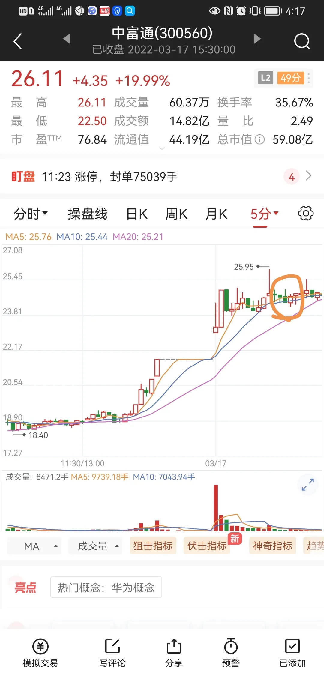 10.中富通反复强攻反复被人揍回来[我想静静],有点像敌我双方阵地战,最后勉强收了涨停。