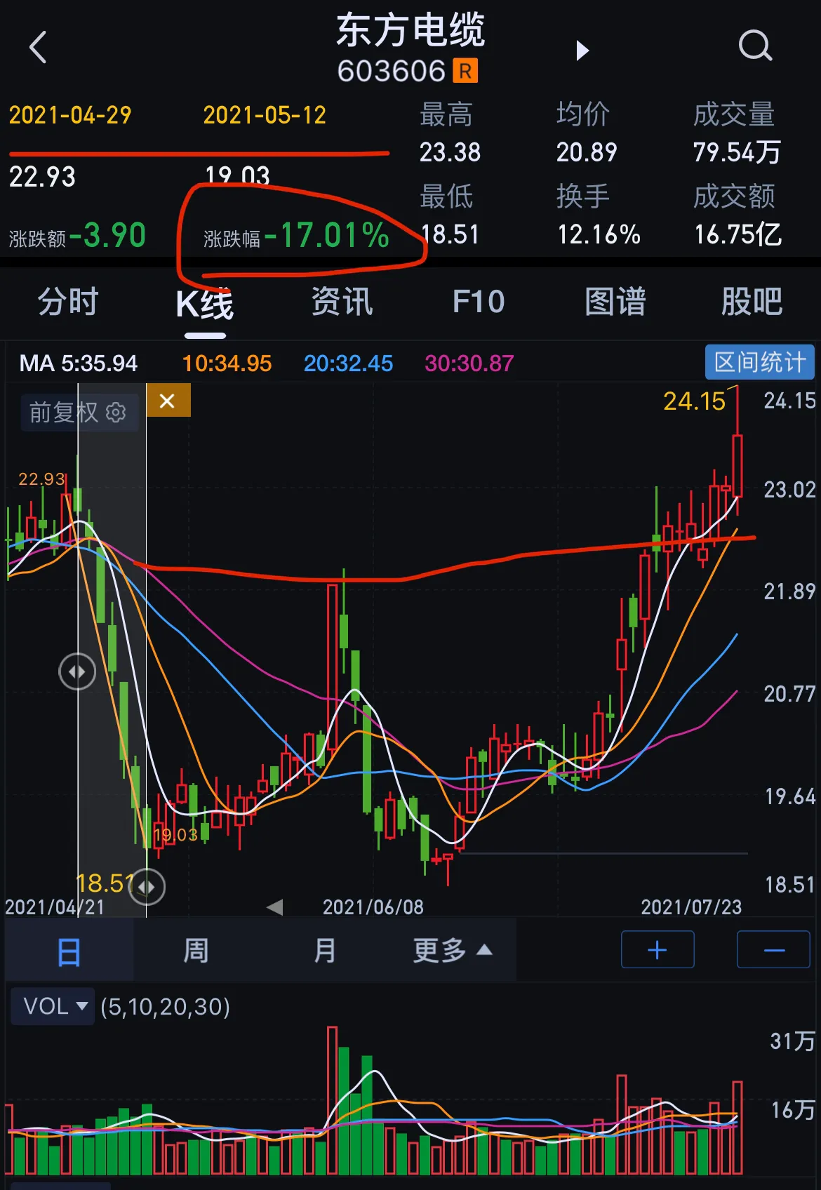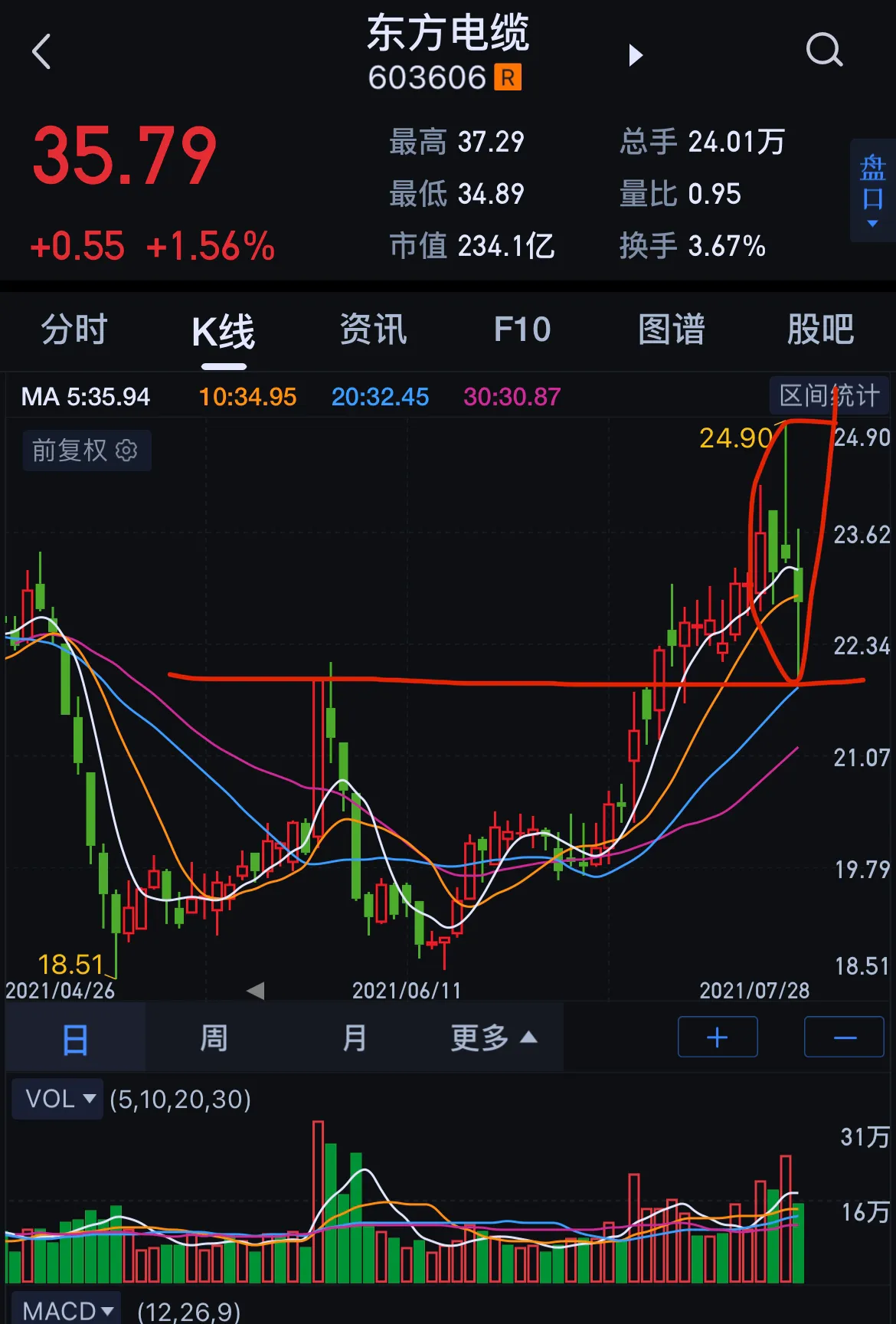 1.东方电缆股东数量为何能三个月内下降20%!?顶底zw有句话很经典,所有的消息和业绩都会表现在K线上,无非就是早一点或晚一点!这里就用K线分析一下该票!2021年4月末至7月中旬,走了一个阶段W底,蹊跷之处相当的多,开始是无厘头的下跌,跌破平台下沿,跌幅接近20%,接一个无厘头涨停,然后是暴量下跌,回到W底底部,最蹊跷之处即将发生,股价未放量就形成反包,突破W颈线,至此,黄金坑算正式完成,期间换手接近100%,卖出的还没觉悟也即将哭泣!W底突破颈线,回踩不破确认就是买点,该票此处的走法应该获得掌声,超级有创造力,连续14个交易日的上涨后,接一个小墓碑,接射击之星,接长针探底,三根阴线还组成三只乌鸦!其中的惊心动魄,和纠结彷徨就算不在其中,各位也能体会一二吧!?股价进入拉升阶段后,特别是在突破历史新高前后,几乎每天都在破位,反包中度过,日内振幅10%稀松平常,但是最离奇的还是该股的涨停板,从四月底挖坑开始至今,一共四次涨停,其中三次收盘封住,但是每次的封单都特别少,并且是无一例外的炸板,尾盘才勉强回封!据说基金是不可以涨停板买,跌停板卖的,而涨停后的几个交易日必然会血雨腥风,这就不禁让人浮想了,其中的各路资金到底是啥子关系?!近日三季报大好,但周线走成射击之星,真是日了狗了,如果这都能立马反包,实在是佩服!