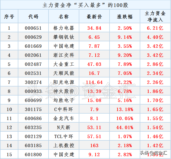 抄底行情,主力资金“大幅买入”100股,名单公布