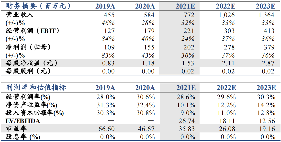 李沐华预计公司2021-2023年归母净利润分别为2.02/2.78/3.79亿元,同比增长30%/37%/36%,对应PE为35.83/26.08/19.16倍,给予2022年40倍PE估值,对应股价84.24元;