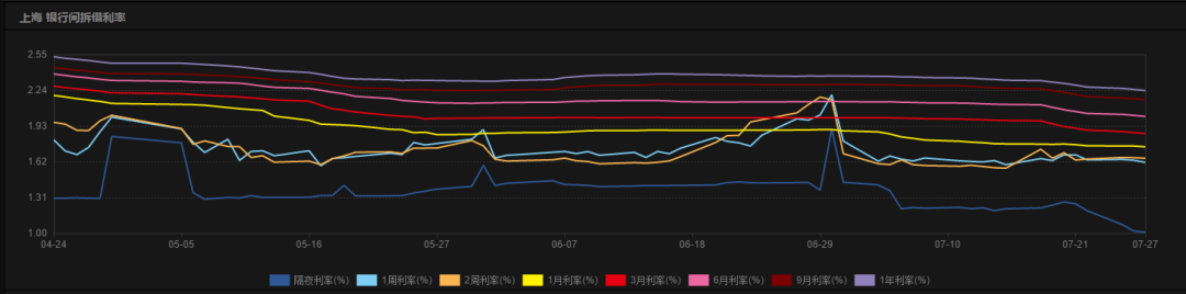 18.但从上海银行间拆借利率走势看,近期各期利率持续走低,甚至创近两年新低。