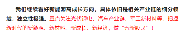 11.这是因为,“五新方向”,就是机构方向! 今天,是属于“五新股民”的胜利,今后,也会是“五新股民”的全面胜利!近期持续走强的光伏设备、人造钻石、汽车零部件等等,每个题材板块,都有着广阔的成长空间。