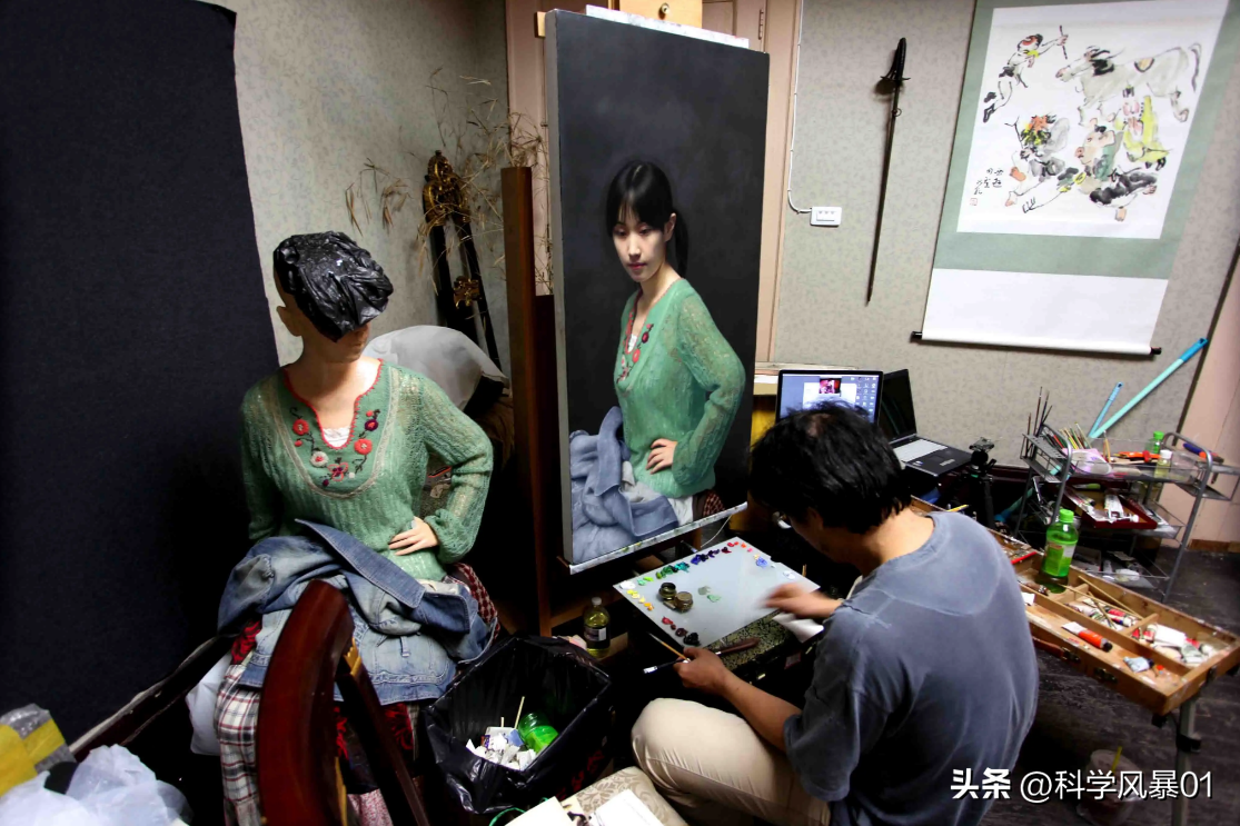 当年在创作《小姜》时,找到了一个打工妹,名字就叫做小姜,冷军选模特都是靠感觉的,看到小姜后就想把她画下来,于是小姜每天坐在椅子上一动也不能动,刚去时齐耳短发,最后成了披肩长发 ,毕竟不是专业模特,哪里能坐得住,好在有工资发就忍了下来,这样一坐就是半年。光手部跟脸部冷军就用了7个月刻画。