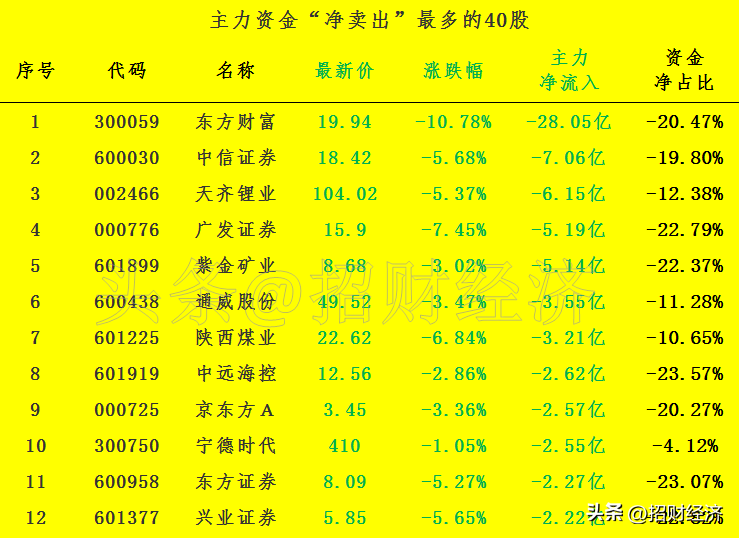 1.超级大跌,不做接盘侠,主力资金“大幅卖出”最多的40股名单来了统计时间:9月16日收盘。