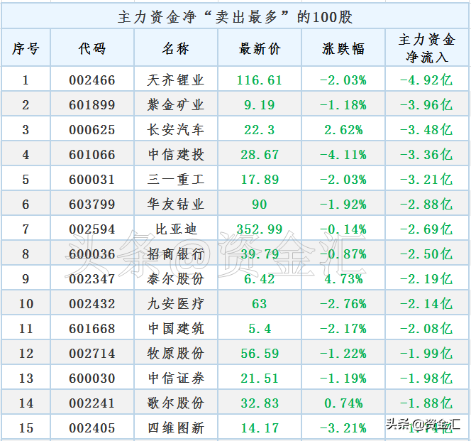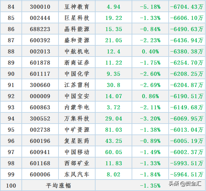 冲高回落,不做“接盘侠”,主力资金“大幅卖出”100股,名单来了