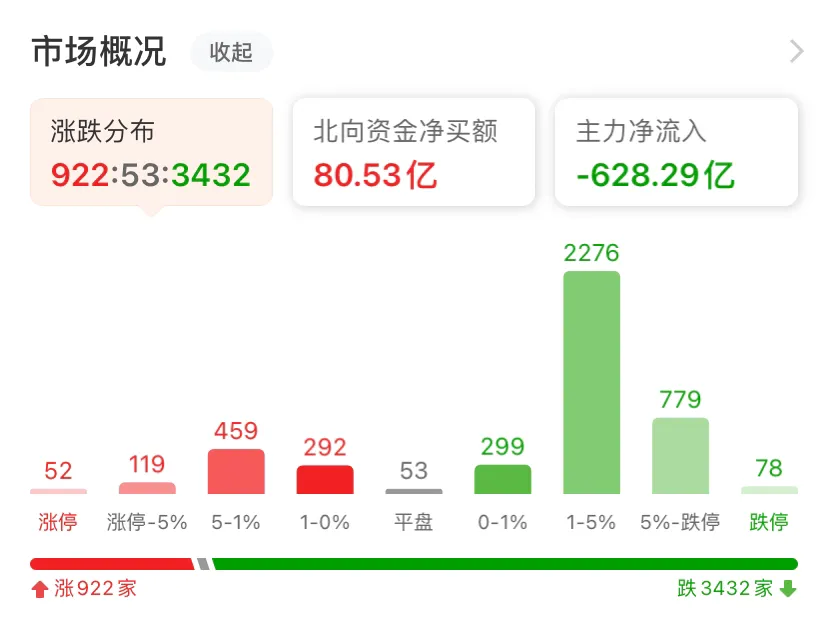 今天两市总成交量稍有下降,成交金额也有1.27万亿。从资金面来看,今天主力资金又净流出628亿,这个量也是很大的,还没有消停的意思。北向资金今天却净流入超80亿。另外双创板块主力资金今天净流出达180亿。