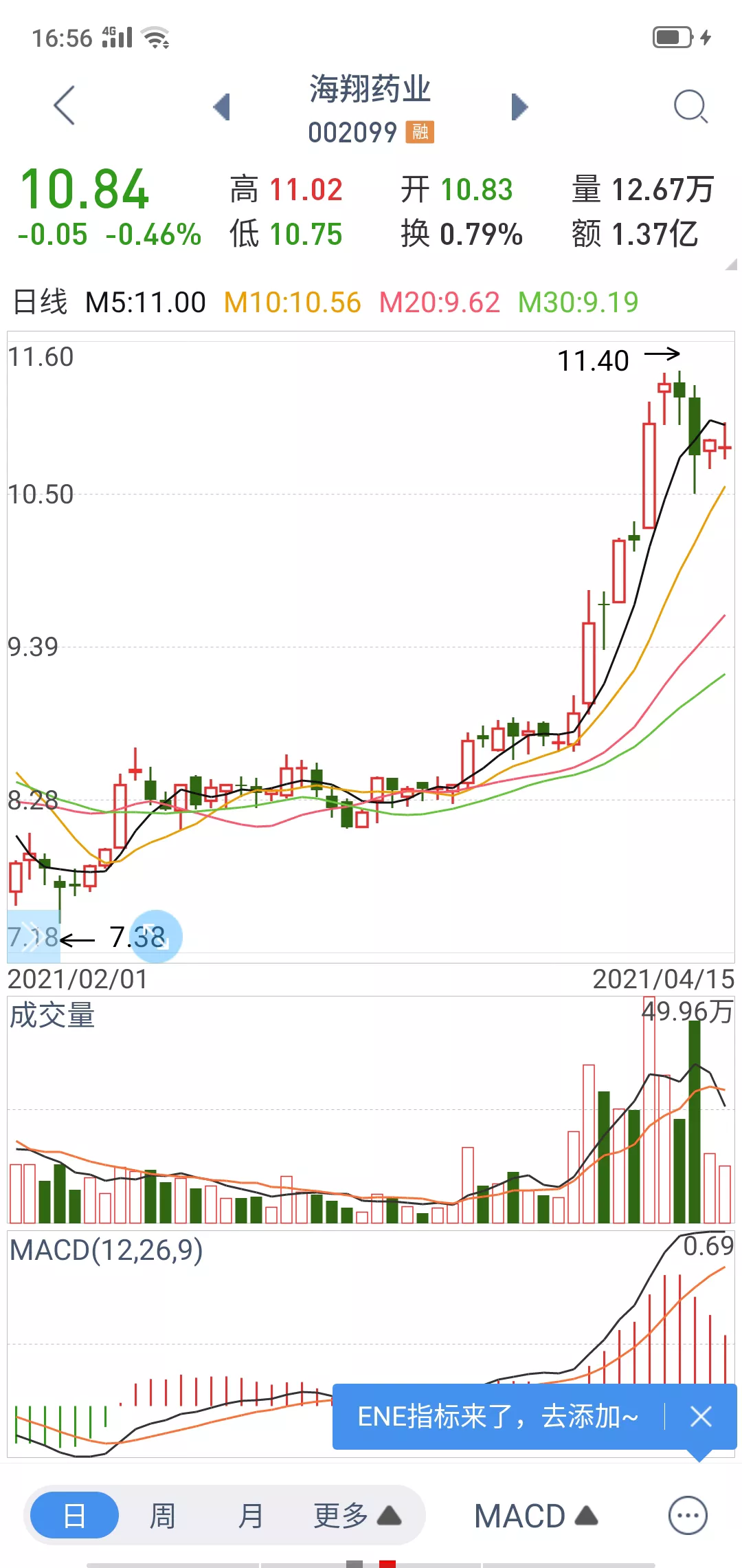 5.不过我有些不是特想卖,原因有三点,喜欢炒股的网友们看看对不对?第一,股票买入价还祘低,有空间涨;第二,海翔药业已批准研制开发新药项目;第三,海翔药业合作生产新冠疫苗。