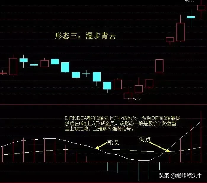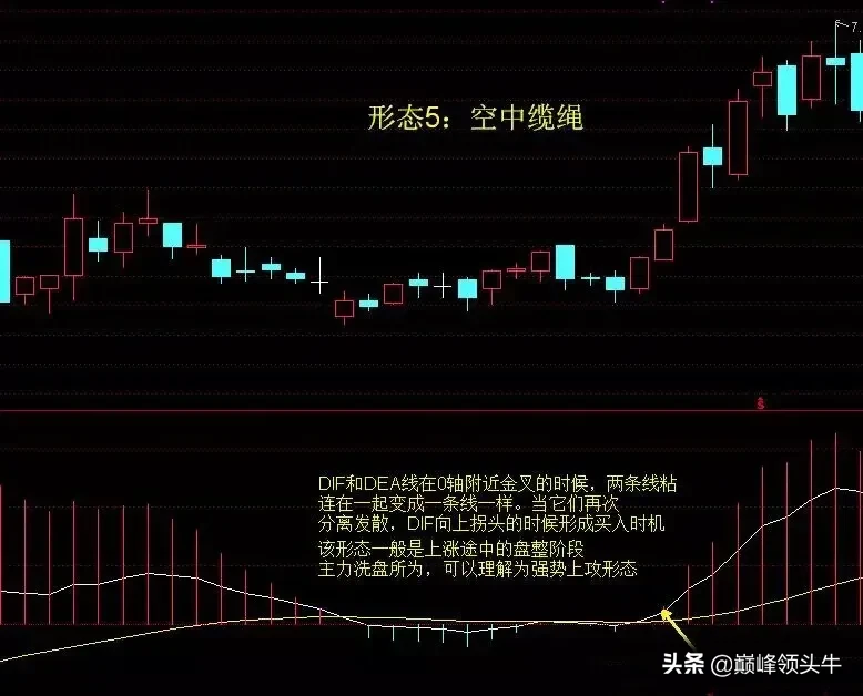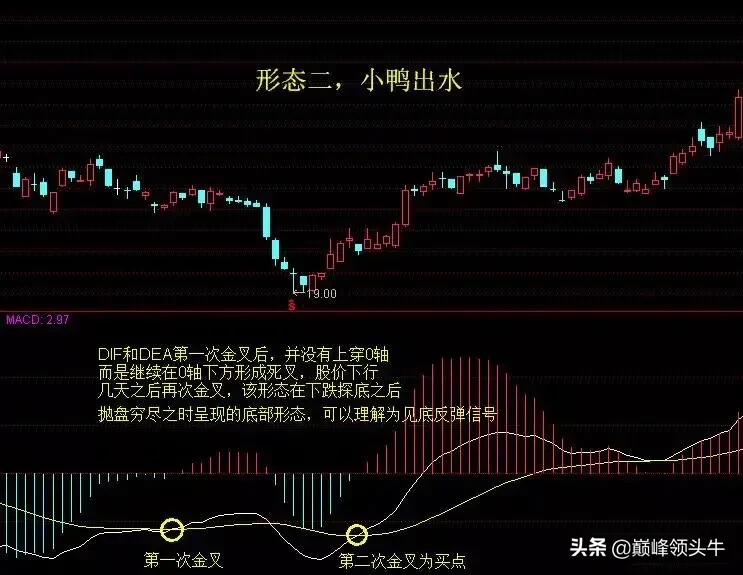 6.5、(图5)两根趋势线都在0轴上方,先走出死叉,然后白线靠近0轴时出现向上走出金叉,可以理解为弱转强。