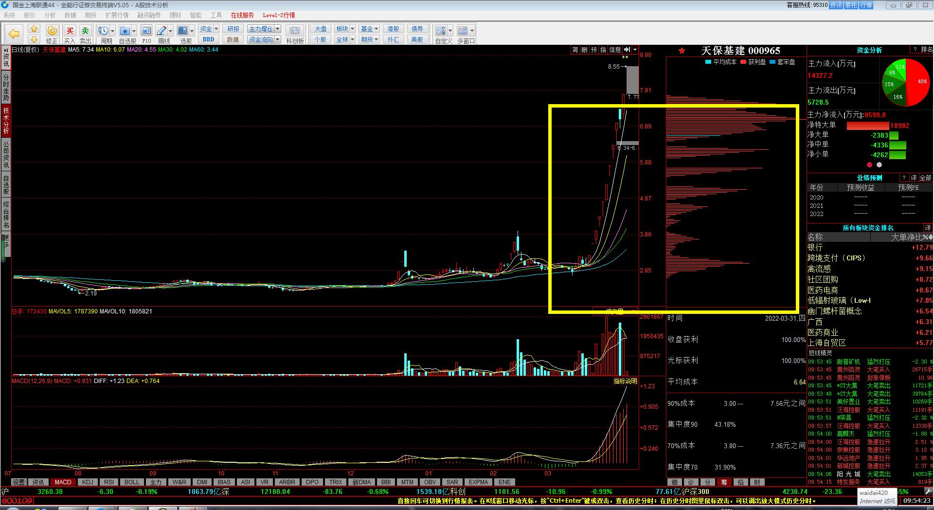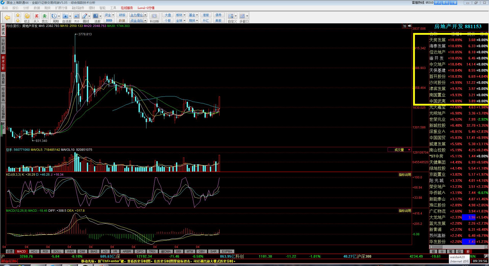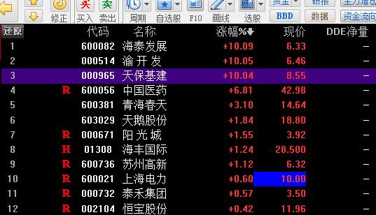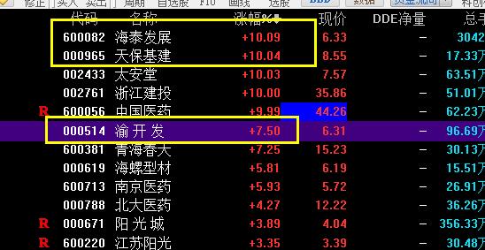 1.昨天 就说了,证券没有持续性,资金明明确确的都在涌进地产股...非要做证券觉得证券好,你就去做就是啦,不用来跟我理论,我只是给我的粉丝提个醒我之前也是非常不看好地产股;评论里有人问股票,我也是先上来一句,地产股没有行情,但那是2周以前的事情了......天保基建,地产股,成为市场总龙头以后,情势就改了...持续到啥时候,不知道!知道的是,天保基建没结束,地产股的行情就会持续!具体到个股,渝开发,8.8之前是安全的....怪不得昨天早上开盘一直留有一个小口子,原来是这么弱势呀....居然涨停上调下来这么深...目前的热点板块就是地产和中医药;太安堂,非常漂亮的月线图,我因为抢跑,早就选出来了,他挖那么深的坑,我就把他删了....今天又加回来,看看他怎么涨,大概率是不会碰的.天保基建,龙头就是龙头,可以看12的目标位置了....好好的一个龙头,被我做滴七零八落......问题出在哪里呀?!明明是筹码非常漂亮,老是早早的落袋为安!自作聪明!小农思想!南京医药,终于被中国医药带涨停了,好艰难呀!!!!!以后千万不要有这种贪便宜的心理啦!中国医药是明确的开始另一波儿的上涨,难道浙江建投也能再起一波儿?