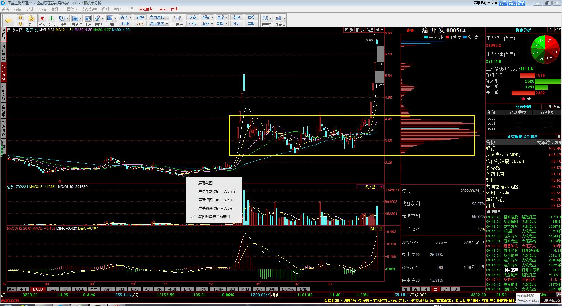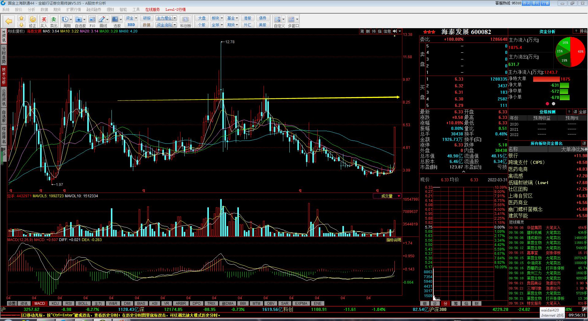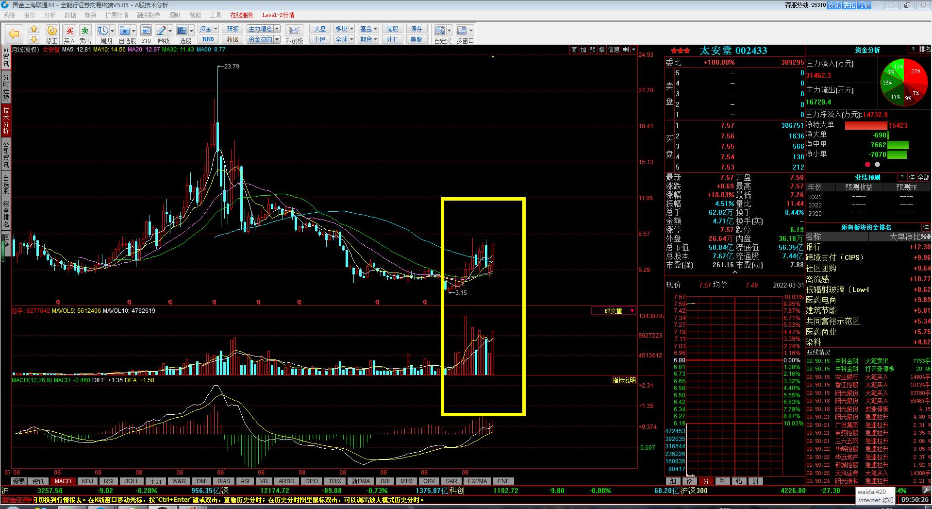 1.昨天 就说了,证券没有持续性,资金明明确确的都在涌进地产股...非要做证券觉得证券好,你就去做就是啦,不用来跟我理论,我只是给我的粉丝提个醒我之前也是非常不看好地产股;评论里有人问股票,我也是先上来一句,地产股没有行情,但那是2周以前的事情了......天保基建,地产股,成为市场总龙头以后,情势就改了...持续到啥时候,不知道!知道的是,天保基建没结束,地产股的行情就会持续!具体到个股,渝开发,8.8之前是安全的....怪不得昨天早上开盘一直留有一个小口子,原来是这么弱势呀....居然涨停上调下来这么深...目前的热点板块就是地产和中医药;太安堂,非常漂亮的月线图,我因为抢跑,早就选出来了,他挖那么深的坑,我就把他删了....今天又加回来,看看他怎么涨,大概率是不会碰的.天保基建,龙头就是龙头,可以看12的目标位置了....好好的一个龙头,被我做滴七零八落......问题出在哪里呀?!明明是筹码非常漂亮,老是早早的落袋为安!自作聪明!小农思想!南京医药,终于被中国医药带涨停了,好艰难呀!!!!!以后千万不要有这种贪便宜的心理啦!中国医药是明确的开始另一波儿的上涨,难道浙江建投也能再起一波儿?