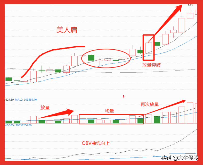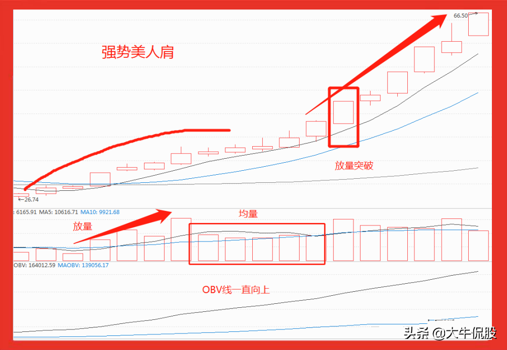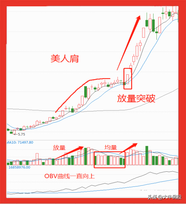 5.4、量价配合,调整时缩量,突破时放量,并且OBV指标开口向上。