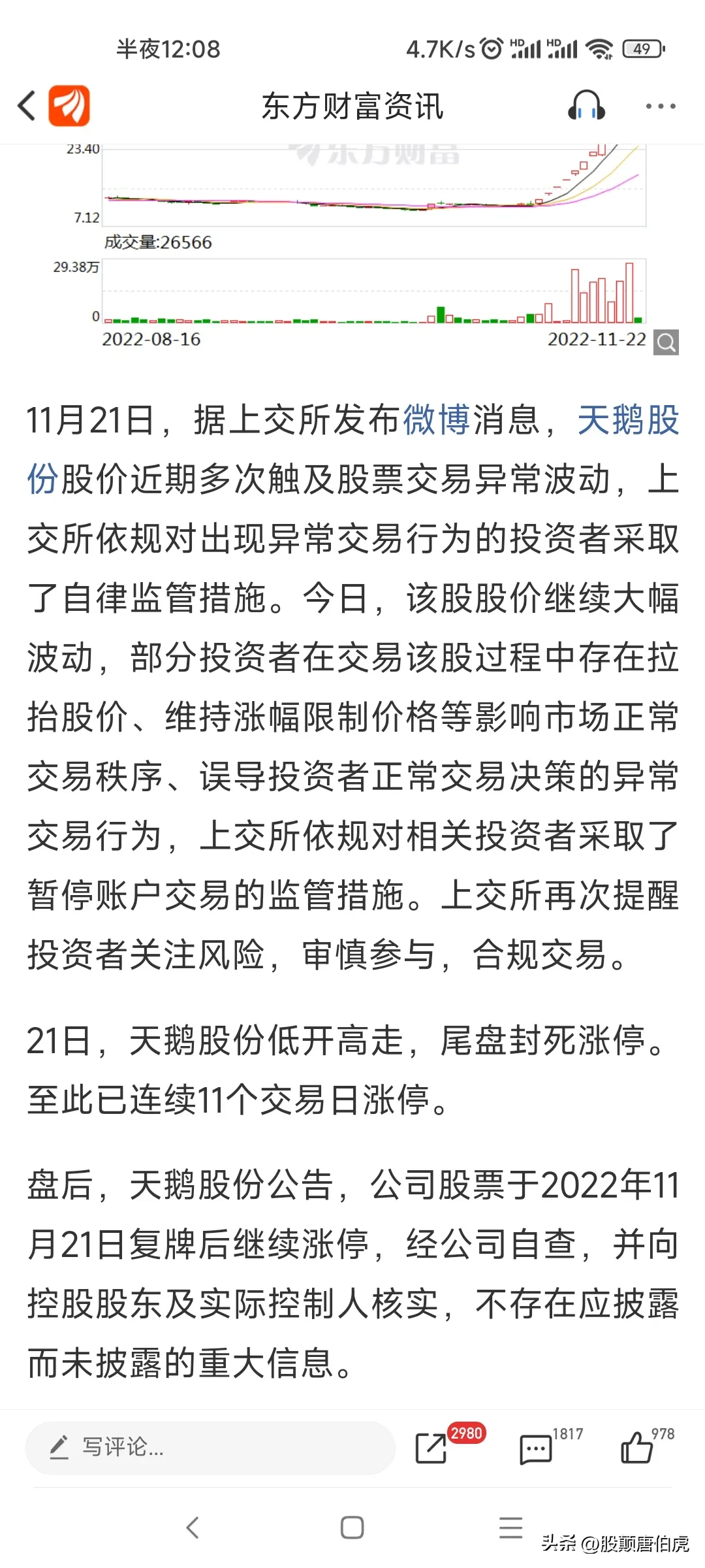 1.今天对天鹅股份临时的监管,让我15年股龄的股民感到害怕。