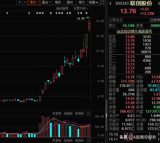 7月5日,联创股份无缘无故爆发涨停20CM!晚间发公告:上半年预计盈利4000万~4800万!扭亏为盈!后续两天又是两个20CM涨停!此后股价整体保持连续上涨,几乎没有回调,到了今天,涨幅已经超过300%!