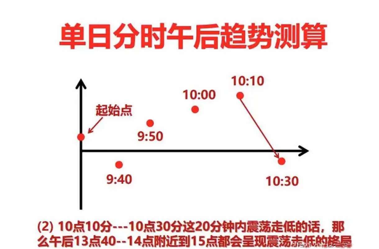 13.2:上午10:10分到10:30分,这段时间内股价走出向下震荡行情,那么下午13:40到收盘这个时间段也会跟随震荡向下。