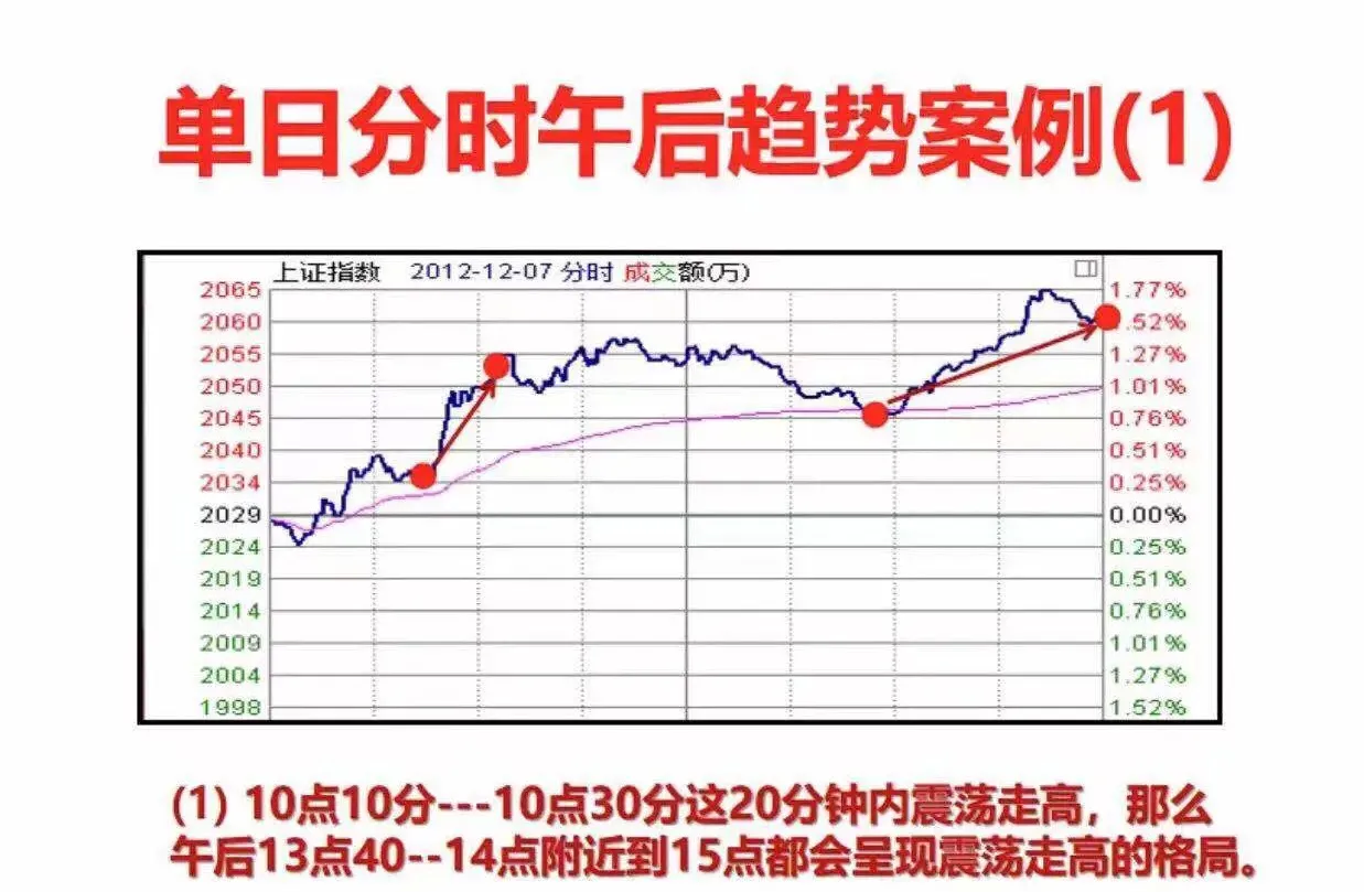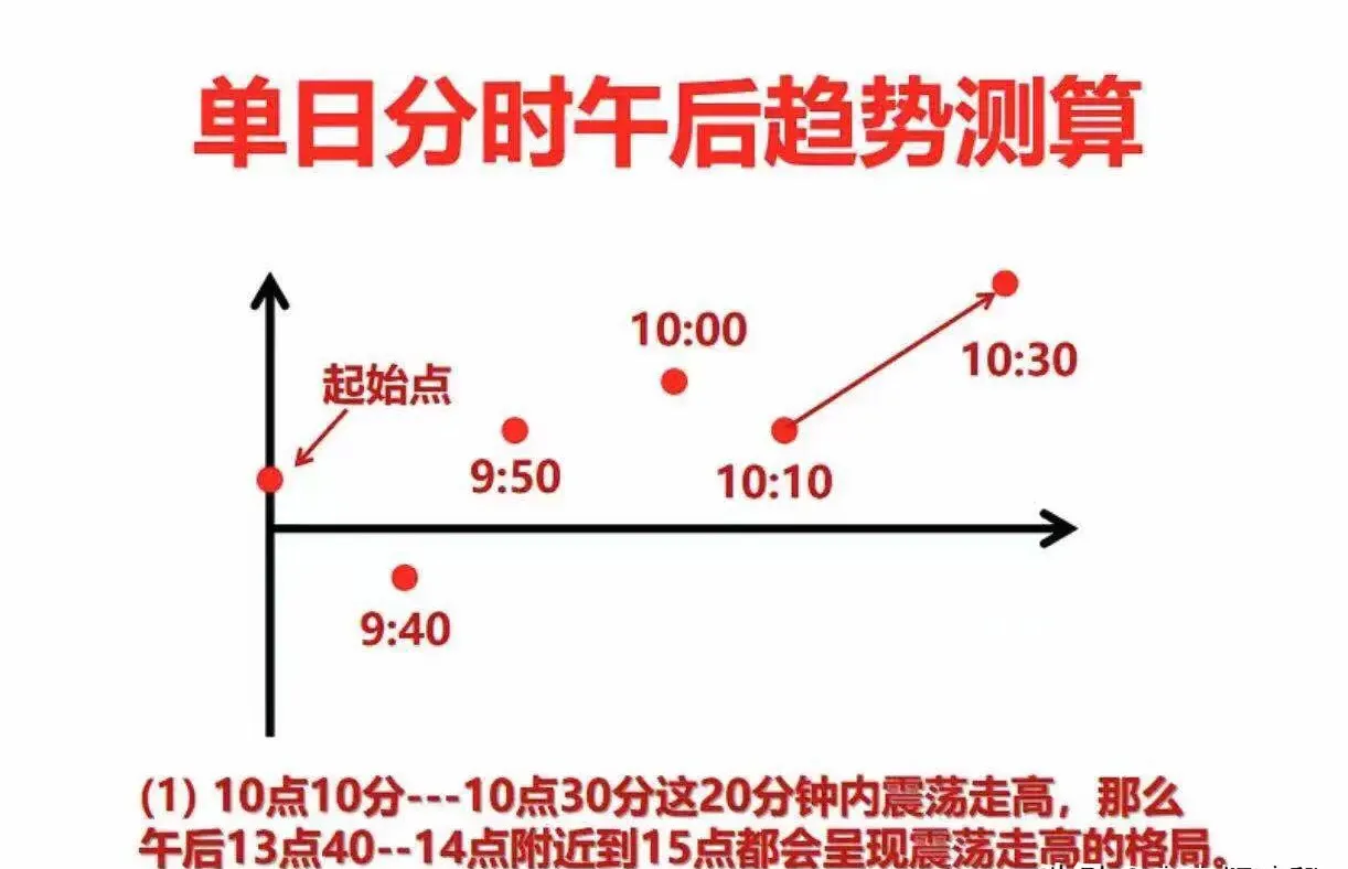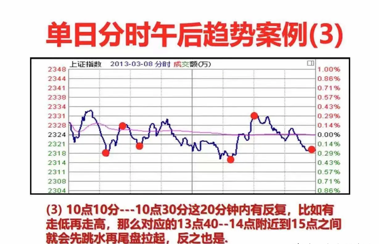 14.3:上午10:10分到10:30分,这段时间内股价一上一下,形成箱体走势,比如最终突破箱体向上,那么下午13:40到收盘这个时间段也会有同样的情况,如果是箱体向下,那下午也会有相类似的情况出现。