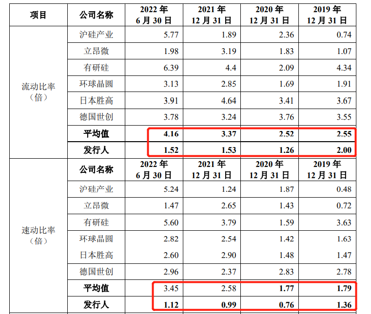 下图2为报告期内,上海合晶偿债能力指标与同行业公司比较情况,数据来源:招股说明书(申报稿)