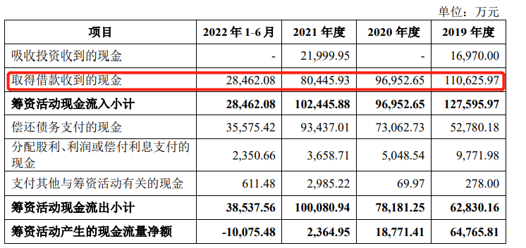 可以看到,公司整体现金流的维持较多地依靠筹资,而筹资活动现金流入除了来自公司引入了新的投资者,更主要的是增加了向银行的借款所致。到了2021年度,经营活动现金流净额已经能稍稍覆盖住投资资金需求,那么源源不断地借款或许不再是为了进行投资,更多的则是为了新债还旧债了。