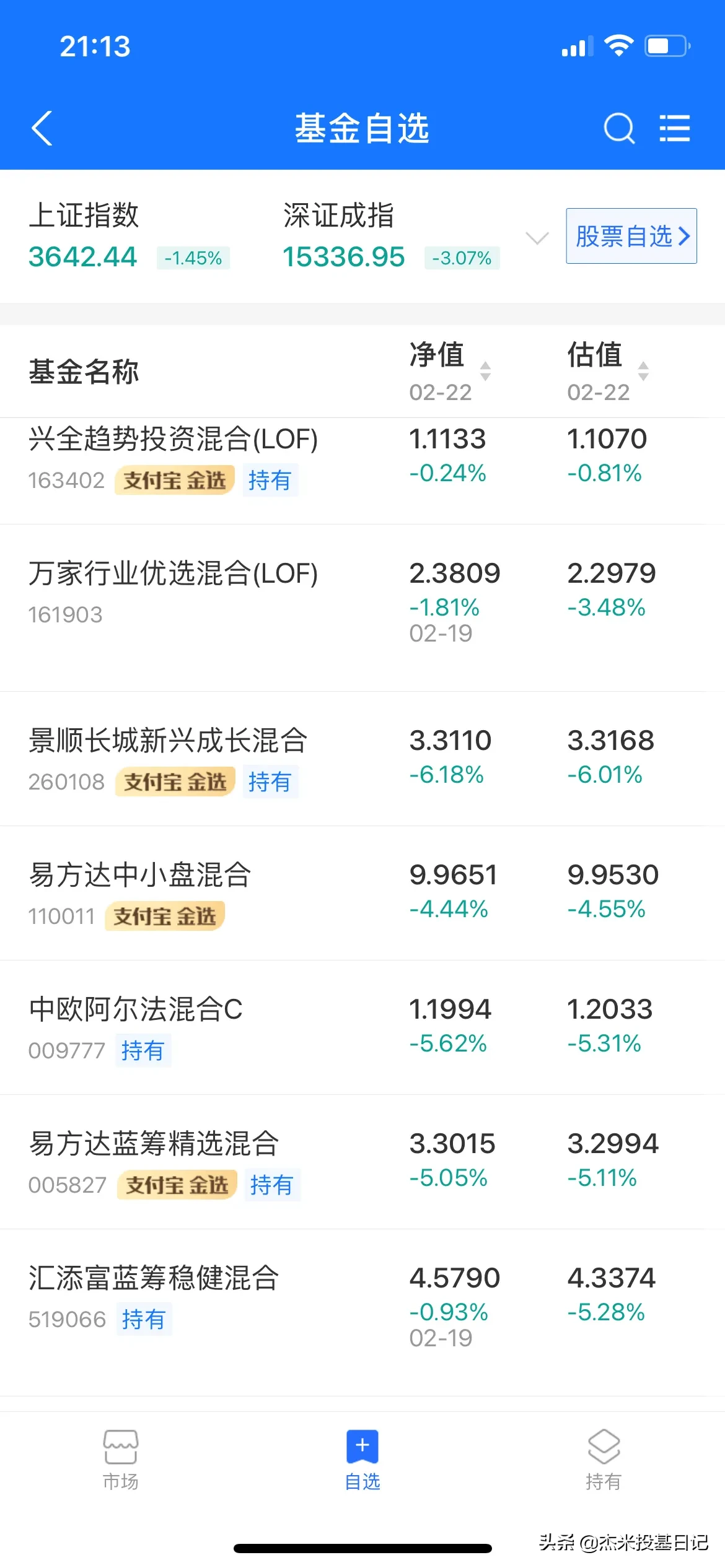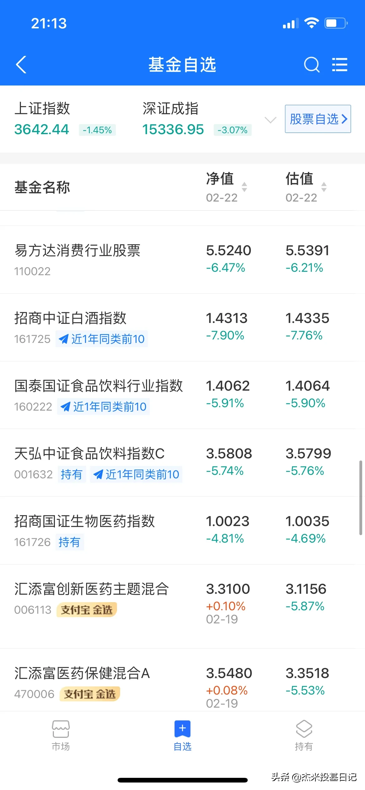4.基金今天跌的不是一点点的惨,净值已陆续慢慢更新出来,招商白酒跌幅-7.9%、景顺长城新兴成长跌幅-6.18%、中欧医疗健康跌幅-5.43%、前海开源混合跌幅-5.34%、中欧阿尔法跌幅-5.62%、易方达蓝筹跌幅-5.05%广发创新升级跌幅-2.43%,现在基金普遍都会持有几个白酒股,本来白酒算是防御板块,但这次这个防御盾自己腐烂了…不攻自破!今天估计起码要有一万块交出去了,如继续按照目前节奏下去的话,2月收益大概率要绿盘。