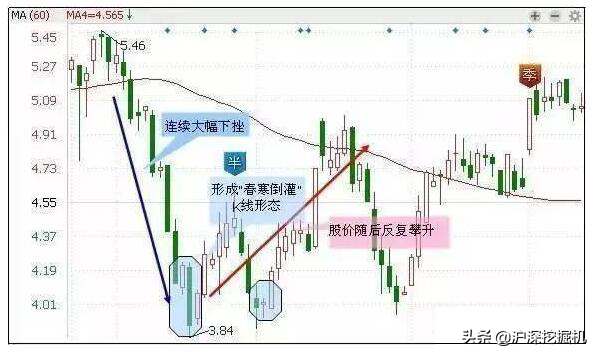 该K线形态是指股价持续下挫,在低档接连收出四五根中大阴线后出现一根阳线,但次日马上被一根中大阴线所吞没,但5日乖离率出现背离走势,此种走势暗示股价已至底部,第二日若高开高走则是低吸的良机。
