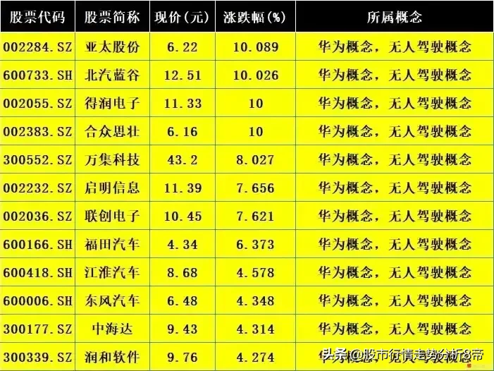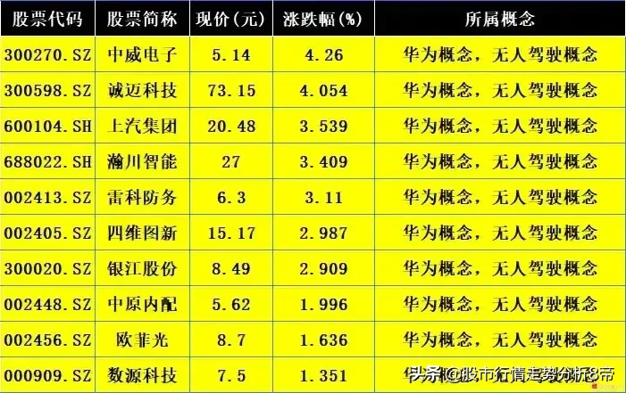 2.热门题材解读1.智能汽车:这板块主要还是华为自动驾驶首秀引爆的。