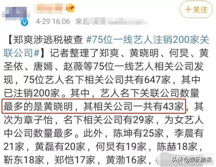 而后,他又成立了一家有一家公司,据有关人员统计,黄晓明旗下有40多家公司。