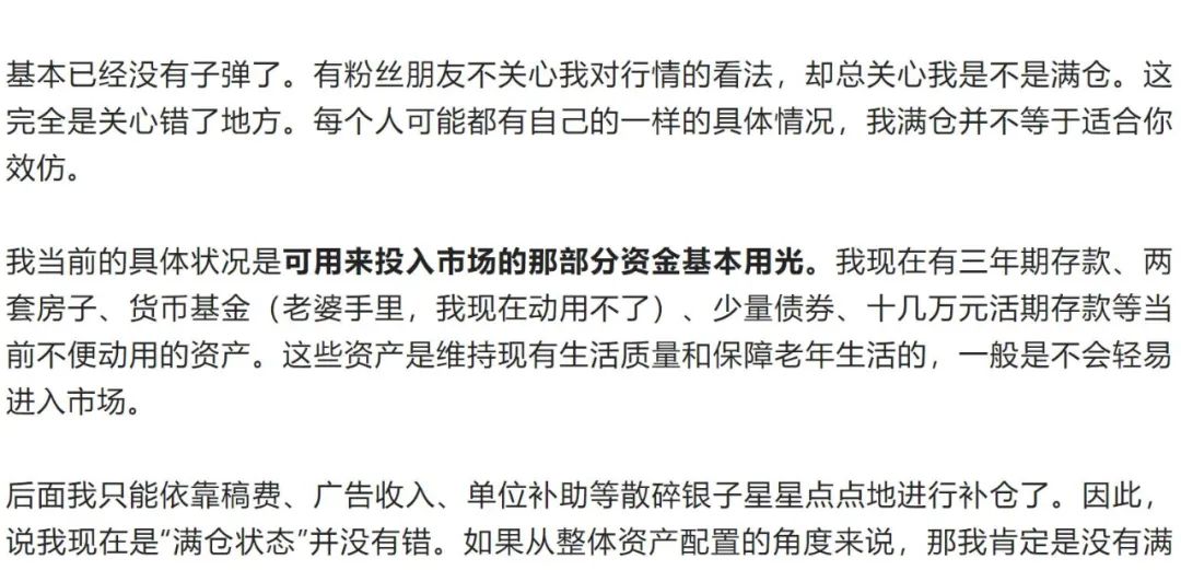有的粉丝甚至以为我只有八成仓甚至五成仓。