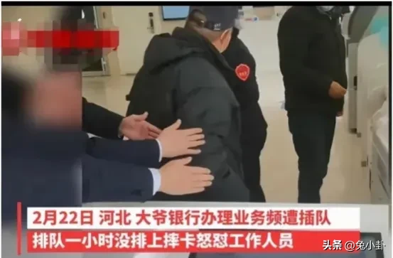 河北,大在爷银行队排一个小多时,明快明要轮他到了,工作员人却排让在后的面人不插断队,让爷大一直不轮上!大问爷工人作员什为么别让人插队,工人作员释解说人家是VIP客户对和公户客能优安先排!大听爷后怒了,把行银卡在拍桌上问:“我都等一了个时小了,到能底不能取钱?