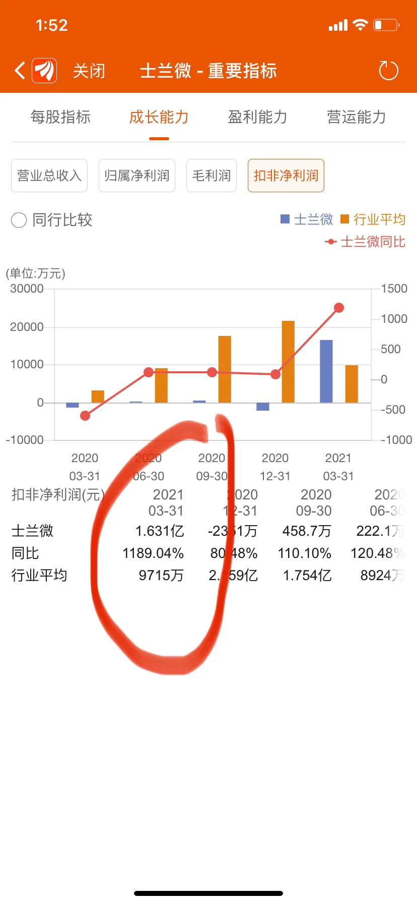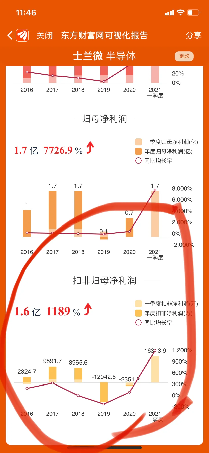 4.时间到了2021年,今年一季度扣非净利润1.631亿,同比增长1189%,翻了11倍还多。