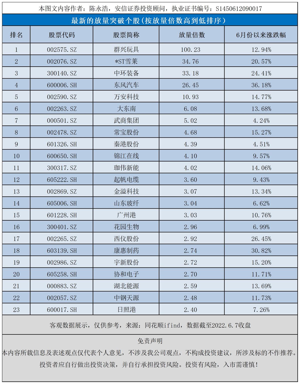 走强信号?23只个股呈现放量突破形态,最高的放量100倍。
