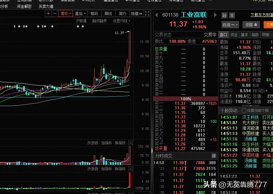 1.周五盘尾工业富联涨停,这又是沪深300权重股涨停。