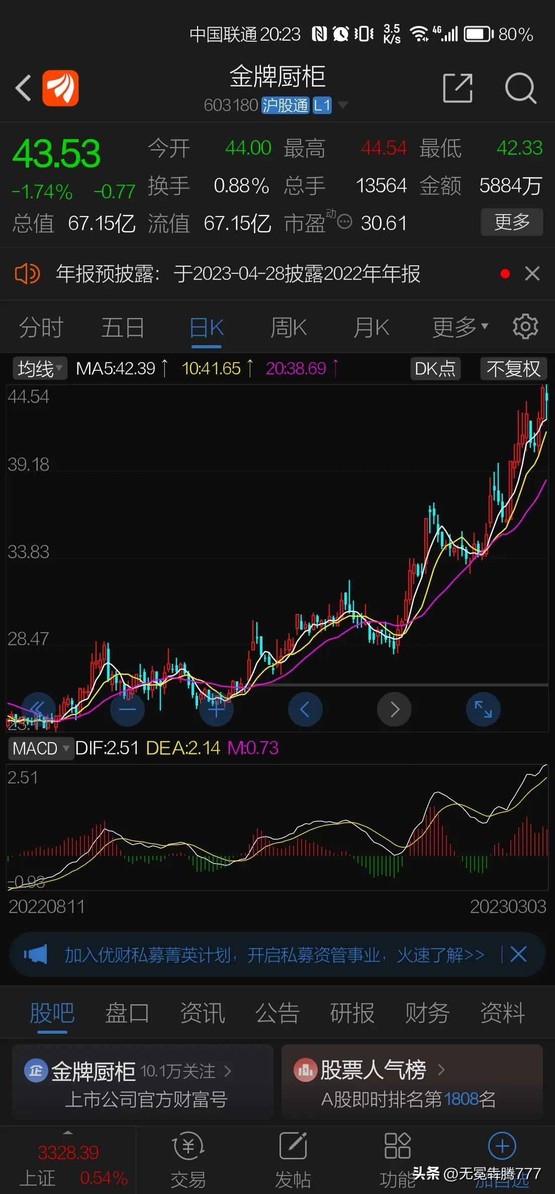 2.最近三大运营商等大盘股接连涨停,两桶油和中字头连续大涨,钢铁水泥银行股也趋势崛起,这并不是偶然,牛市气息扑面而来,再去看高速铁路港口等防御性个股走出趋势,熊市里它们是绝对不会这么走的,之所以还每天有人抱怨赚了指数不赚钱,每天大量个股调整下跌,那是因为现在是牛市初期,每次牛市初期都是这样的,上一轮牛市还在的老股民会更懂,只有大盘股起来了才能提振市场信心!牛市初期进攻时刻需要金融中字头,防守时刻需要医药消费,科技股在热点轮转的时刻更具活力,进入牛市中期股票底部筑好纷纷站稳年线就是普涨抬高水位的时候了。
