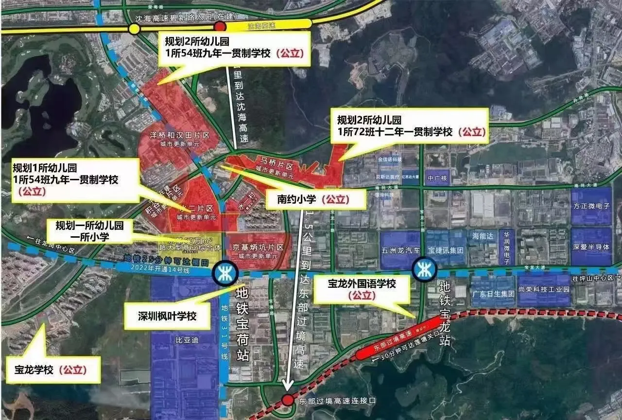 11.学校: 宝龙外国语学校、宝龙学校、南约小学、枫叶学校(贵族学校)周边企业:比亚迪总部、中广核全球总部大厦已在建、五洲龙、科陆电子、雄帝科技、海能达、创维、科信通信、贝斯达医疗、华润赛美科微电子、方正微电子等等,上市公司和十亿级公司众多,打造东部科创总部基地—-宝龙科技城。