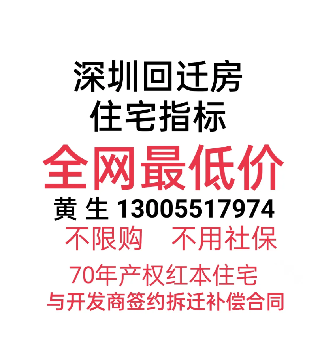 1.100万起买深圳两房住宅回迁房指标,70年产权红本住宅,龙岗区宝龙科技城,14号地铁线南约地铁站,半小时可直达福田,宝龙科技城是东部最大科技产业城,无需购房名额。
