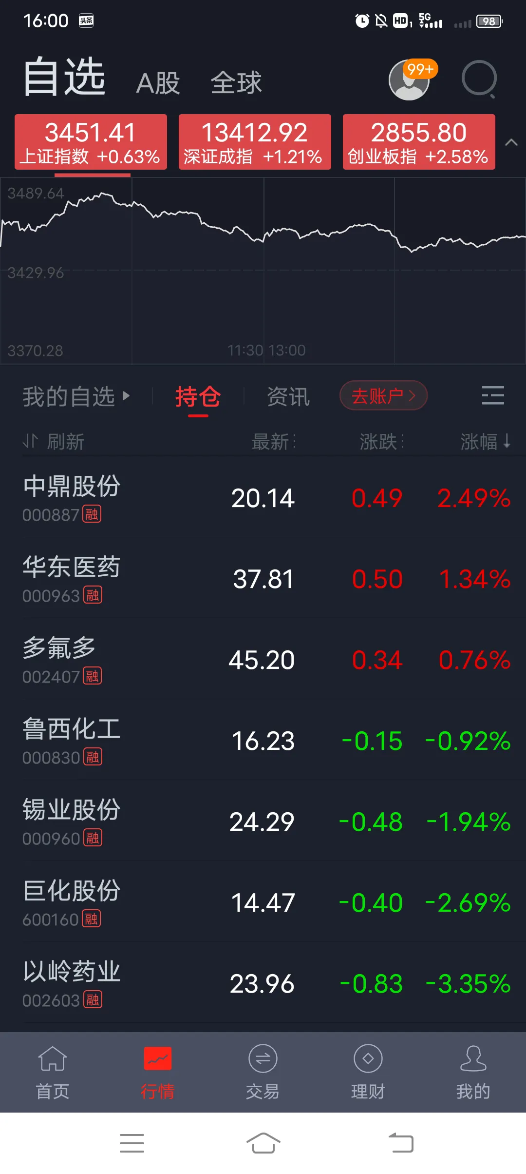 5.当日盈亏分析:盘前持股7只,截止今日收盘时3红4绿,由于在盘中对华东医药做t失败导致亏损,截止今日收盘,有2只盈亏,5只亏损,全天整体出血1063.57元,当日个股复盘分析:今天持股池中有7只个股,具体情况如下:1.底分型形态股:多氟多,今日高开低走冲高又回落,缩量上涨0.79%,收于45.20元,收小阴线,形成了底分型的K线形态,短期看多!2.上涨吞没股华东医药,今日跳空高开冲高回落,放量上涨1.34%,收于37.81元,收出了带长上影线T字线,出现了强势上涨吞没形态K线组合,短期看多。