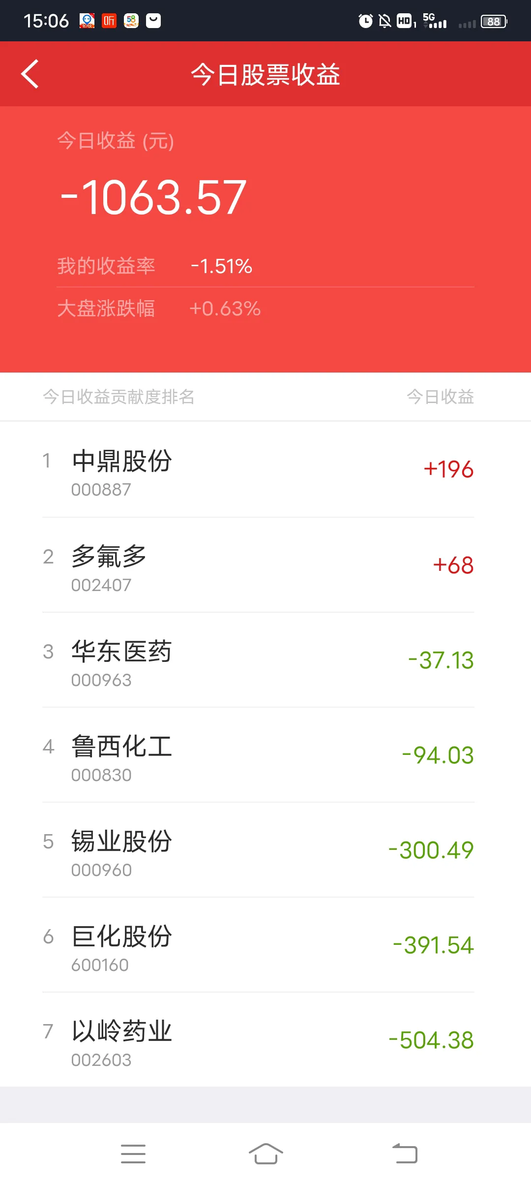 1.30万本金炒股日记:2022.2.25整体盈亏统计:今日全天出血1063.57元,全天收益率为-1.51%,跑输了大盘上涨幅度(0.63%)。