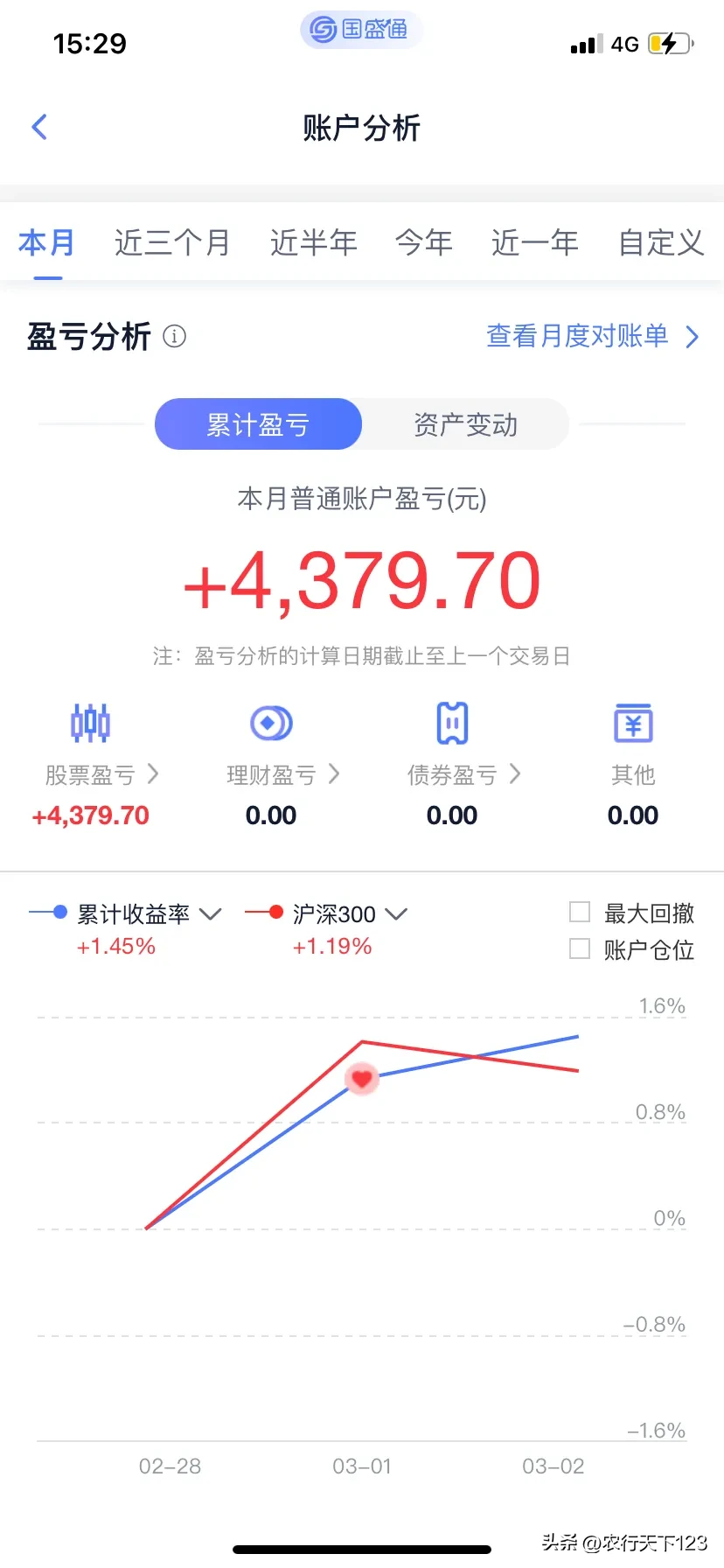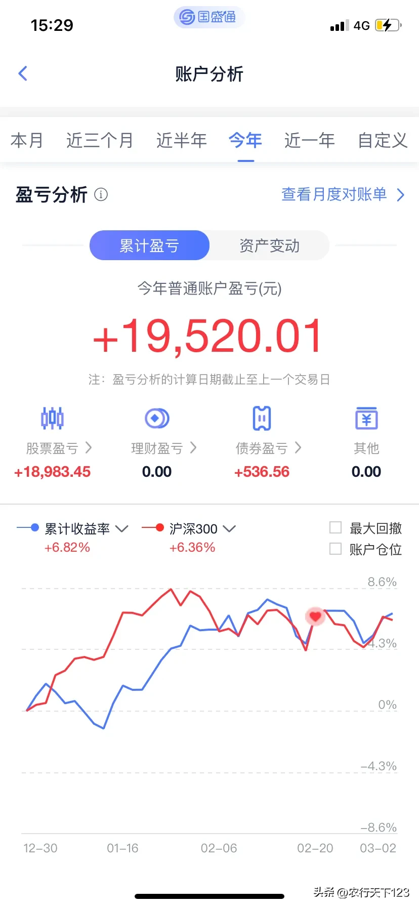 5.注册制的正式实施,全面深化改革,防疫政策的放松,全力以赴拼经济,中央银行的货币宽松,北向资金的进入,利好政策措施不断完善等等,这些都决定了股市的最终走势,使之真正成为反映经济的晴雨表!我们将共同见证历史,拭目以待!从2023年3月1日开始,每天晒一晒自己账户的盈亏情况,这是第一手资料的分享,也是对自己的鞭策。