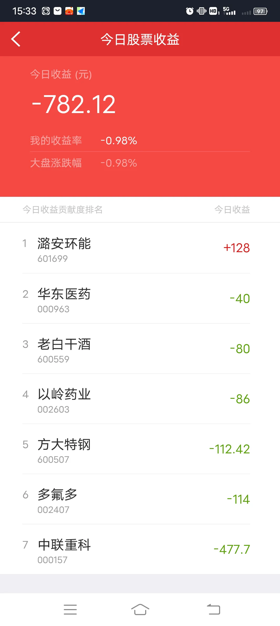 1.2022.2.14上证指数跳空低开,加速下跌0.98%,截止今天收盘我持有7只票,到下午收盘时1红6绿,但我却未清空手中的股票:具体原因如下:1.璐安环能,收盘价为13.07元,今日缩量上涨0.62%,今日收小星线,形成阳包阳的孕线形态.,显示多方力量正在逐步衰竭,但目前多方仍暂时占优,短期内存在股价回调的情形;2.华东药业,收盘价为36.06元,今日跳空缩量下跌0.55%,收小星线,下降趋势减缓,有止跌企稳迹象。