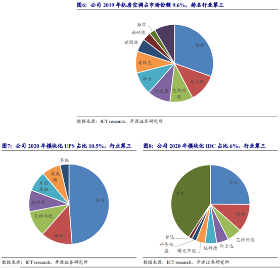 公司在2019年便在机房空调、模块化数据中心和模块化UPS三大细分行业均占据行业第三名的地位。