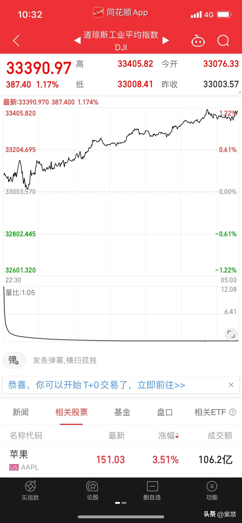 5,美国股市持续反弹!投资者权衡经济数据及多位美联储官员讲话,并开始反思美联储未来货币政策路径,同时美债收益率回落也为市场带来提振,美股震荡收涨,截止收盘,道琼斯指数上涨387.40点,涨幅为1.17%报33390.97点;纳斯达克指数上涨226.02点,涨幅为1.97%报11689.01点;标普500指数涨64.29点,涨幅为1.61%报4045.64点。道指本周累涨1.75%,纳指本周累涨2.58%,标普500指数本周累涨1.9%。