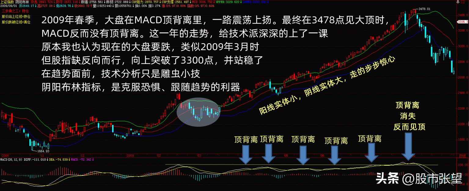 现在依然看空的人,理由无非是“假突破”、“四重顶”、“顶背离”,如果你看一看2009年的走势,就会发现技术分析在预测上很不靠谱。我也是一位技术分析深度爱好者,但我很少用技术分析来预测股市,只是用技术分析的语言来描述走势。我预测A股用的经济周期、美联储货币周期,更具体一点,是盯着人币走势。A股风大浪急波动大,人币是它的定海神针,而人币又看美元脸色。说到这里,3月10日附近我可能又要打方向盘了,美联储在3月17日凌晨加不加息?加多少息?3月10日就会表露出来,人币与A股都会提前反映3月17日的结果。