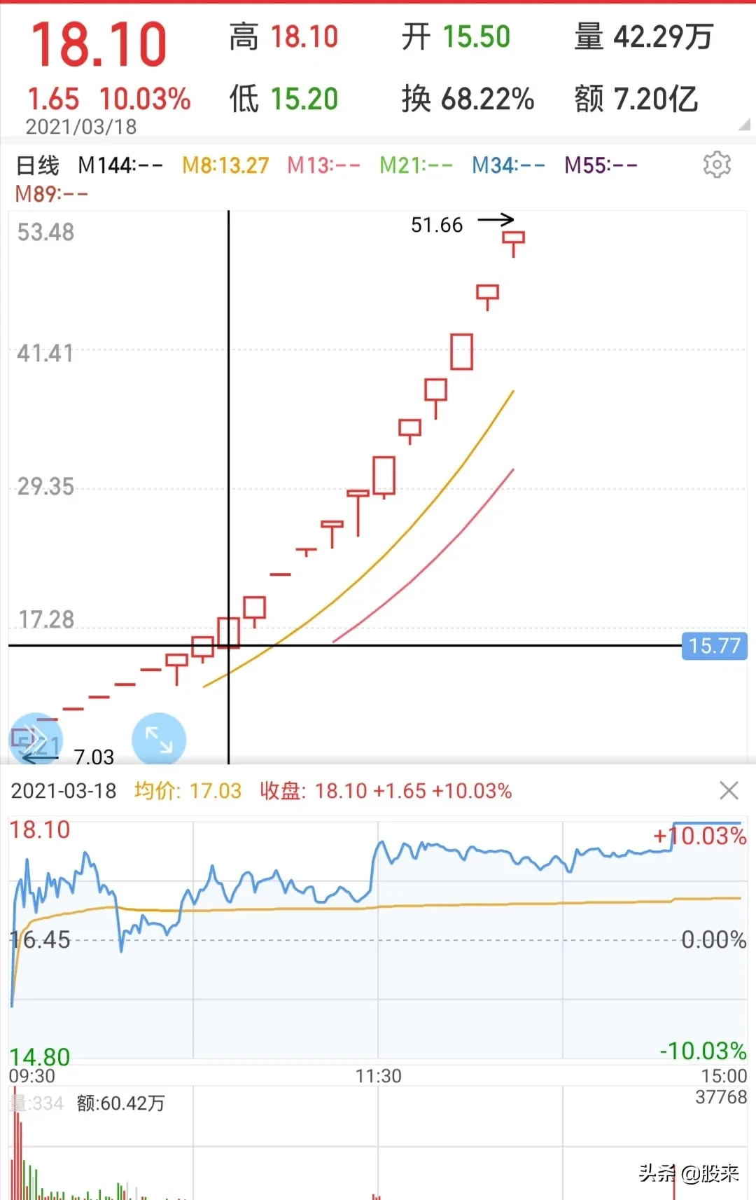 3月18日,股市终于开盘了,自己看好的那只股票竟然低开了,王平安也犹豫了,万一是头部呢?该股很快翻红了,盘中大幅震荡。