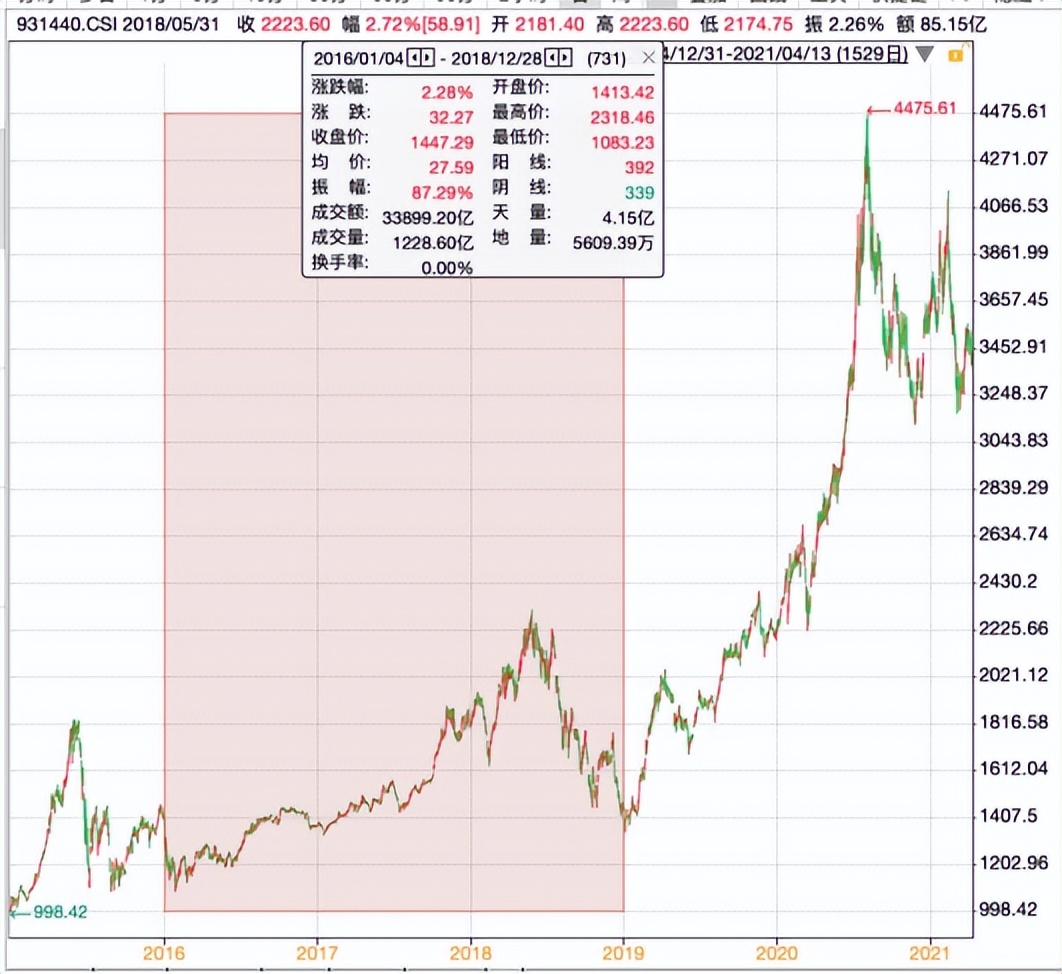 第一个阶段是2016年到2018年的震荡期。2015年药监局改革解决批文积压,后续开展仿制药一致性评价和集采,医保目录调整改革从2017年拉开序幕,受此影响,医药板块在这几年时间里反复震荡,创新药30指数在2016年到2018年期间累计上涨2.28%,期间振幅却高达87.29%,真实演绎了“一顿操作猛如虎,一看收益两块五”。(数据来源:wind,2016.01.01~2018.12.31)