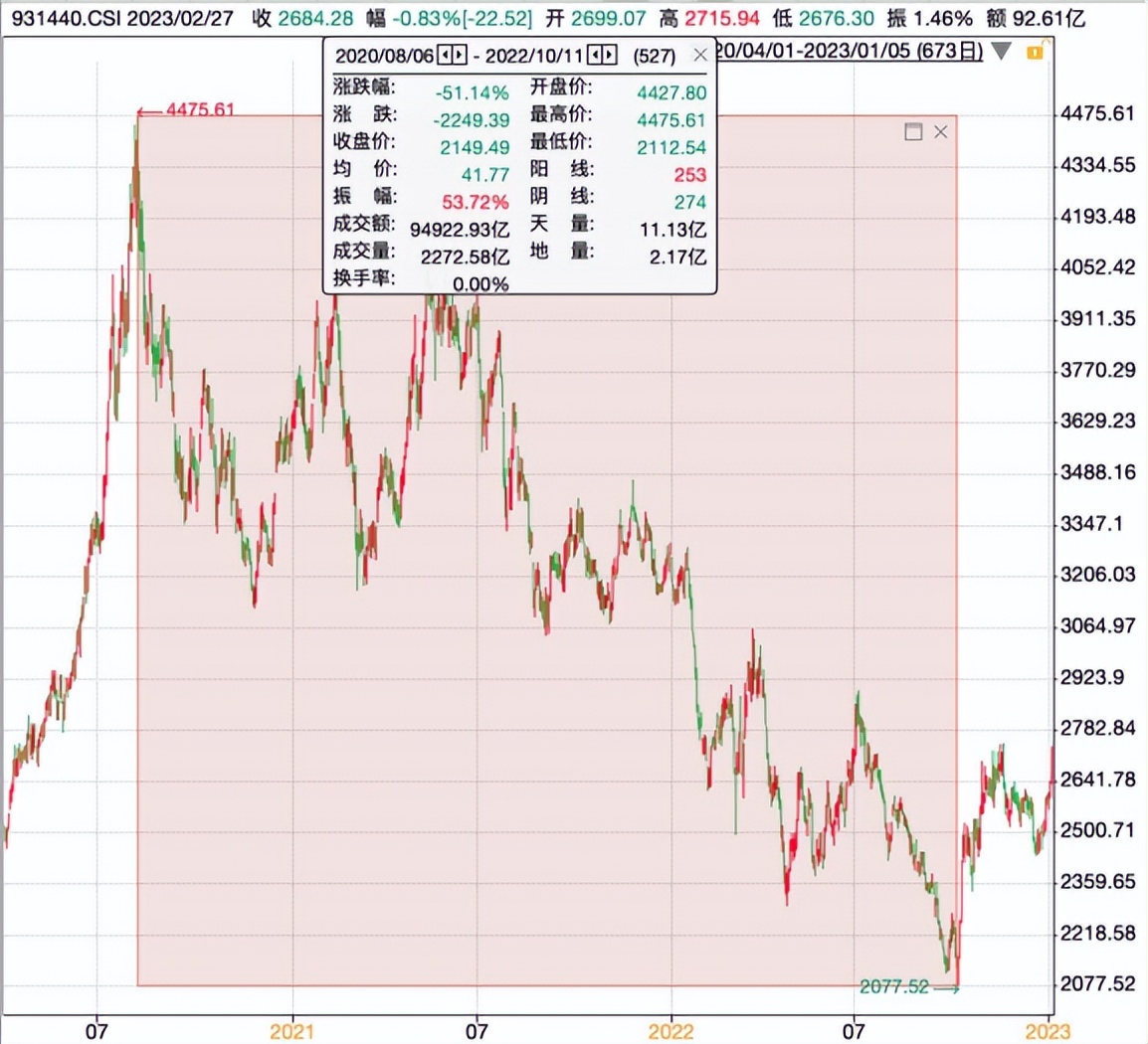 第三个阶段是2020年8月到2022年10月的低迷回调期。2021年医药集采对传统仿制药的价格产生限制,医保对创新药价格产生影响,加之肿瘤领域竞争激烈、出海受限等因素,创新药股价遭遇重创,在2020年8月6日年到2022年10月11日期间,创新药30指数下跌51.14%,陷入了持续深度调整。(参考来源:德邦证券,2023.01.30;数据来源:wind,2020.08.06~2022.10.11)